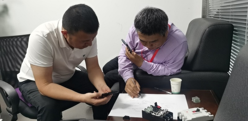 三位老师上午来到天正电气股份有限公司,公司受训技术人员胡昌勇与走访老师进行了会谈。受训学员工程师汇报了课题进展,并现场接受了老师的耐心指导。