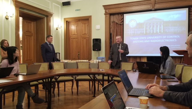 2019年2月25日,国家工程技术研究中心CEPHEI项目组成员孙建广教授一行对俄罗斯托木斯克州立系统控制和无线电电子大学(TUSUR)进行了访问,并参加了项目工作会议。期间TUSUR大学校长A.Shelupanov出席了会议,并详细介绍了TUSUR大学的详细情况,对来访人员表示热烈欢迎。访问期间参观了TUSUR大学网络教室及录播教室,详细了解了其网络课程开展情况和对外合作项目。TUSUR大学和国家工程技术研究中心同为CEPHEI项目承担单位,此次由其承办项目工作会议。隶属于欧盟Erasmus+项目的CEPHEI(Cooperative eLearning Platform for Higher Education in Industrial Innovation)项目,由芬兰拉普兰塔理工大学牵头,来自中国、荷兰、俄罗斯、西班牙、瑞典的9所大学参与。