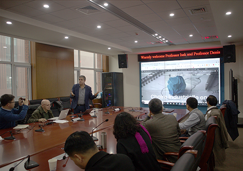 来宾参观中心实验室与科研成果后,中心主任檀润华教授对各位来宾进行了热烈的欢迎,介绍了中心的发展历史与C-TRIZ体系构架及其相关研究方向。丹尼斯教授对其研究的面向网络的创新工程师培训软件平台进行了简要介绍,通过引入企业实际问题来进行创新工程师培训,在培养创新工程师的同时解决了实际问题达到了一举两得的效果。